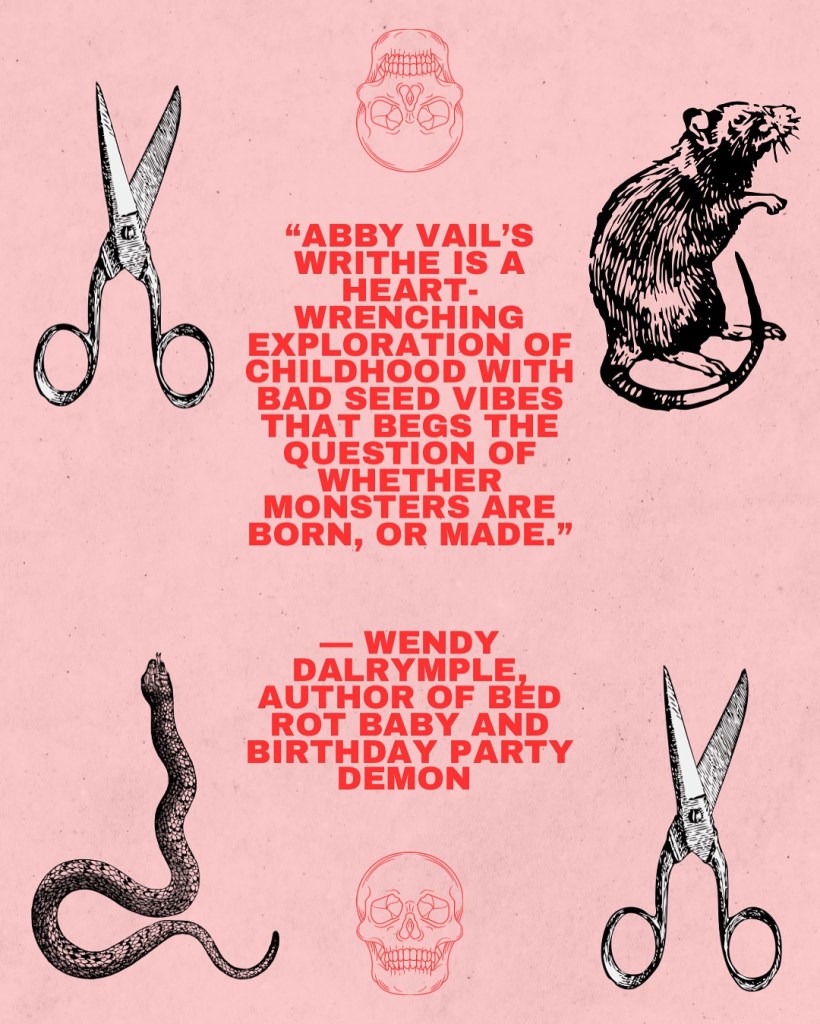 I’ve joined the Sobelo Books family! My novella, WRITHE, releases October 28th 2025. It’s a story about Banner Price, a bullied boy who hopes his drunken mother’s nightly absence will result in her bringing home a man to fill the role of Father, but the unnatural, growing disgust they have for one another pushes Banner into the open arms of violence as vengeance.